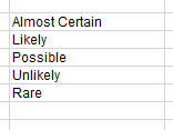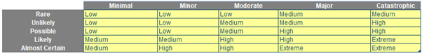 And that’s it, we have a colourful risk table (i.e. the more the likelihood increases and the consequence becomes risky, so will the colour become “more dangerous”).