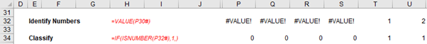 Then, with this new range in P32#, we can see what is a number and what isn’t. The formula