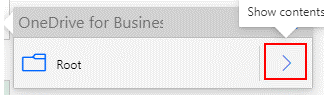 Note: you will be presented with the “Root” parent folder for your OneDrive. Click on the greater than symbol to drill down into your OneDrive folders.