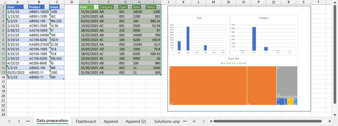 Ways of working with more than one table of data, whether that be in a single workbook or across multiple external data sources, featured in several questions. In this webinar, we combined data in three Excel Tables by referring to each one individually. This would require manual intervention should it be necessary to add further Tables. It is possible to make the process automatic, for example by using an entire folder, rather than an individual file, as the data source. Power Query can then include any new files added to that folder automatically. A previous Power Query webinar used this method to fully automate the production of monthly accounts from basic trial balances held in separate Excel workbooks: