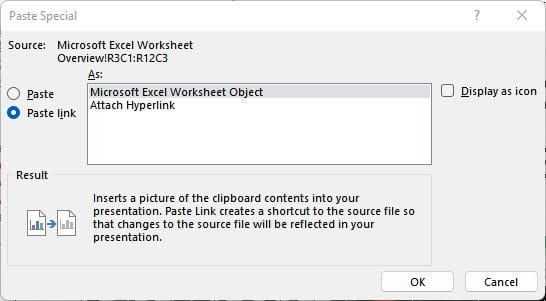 However, this is an actual link to potentially the entire workbook rather than just a picture of a few cells, so would need to be used with great care and consideration for confidentiality. If anyone does know a way to include a live, linked picture of an Excel workbook in another application please let us know: excel@icaew.com