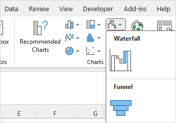 Up to 2016, these charts were only possible by using a stacked Column Chart and then setting the Fill for the base blocks to No Fill, and thus leaving the upper blocks ‘floating’ in mid-air. The built-in Waterfall Chart in Excel is a much quicker way of creating this chart, especially if the data should cross the horizontal axis and go negative at any point.