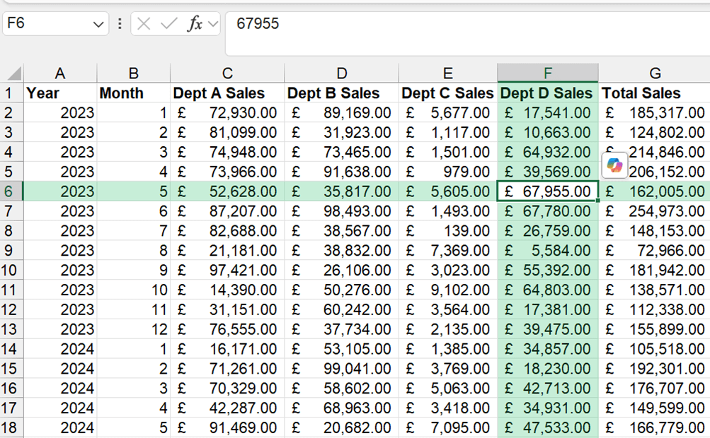 Excel’s new focus cell functionality highlights the row and column of the active cell, allowing users to easily navigate through large sets of data. The functionality has been rolled out for desktop versions of Excel in Windows and Mac from March 2025, though is not widely available in Excel web version as of yet.